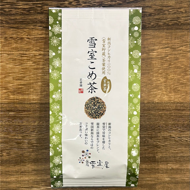 The Joetsu region of Niigata prefecture is a region which receives one of the most heavy snowfall areas in Japan. This tea was processed in this type of climate through a process called snow-aging (description below). In this rich and toasty flavoured tea, a generous amount of matcha is blended with the delicious Koshi-hikari (rice cultivar) brown rice from Niigata and green tea from Shizuoka prefecture that has been aged in Seikoen's natural snow-cooled warehoused called a "Yukimuro" to increase its flavor. A delicious genmaicha that is unique to the snowy wonderlands of Niigata. The moment the tea enters your mouth, the umami and elegant aroma of the extracted material will spread...