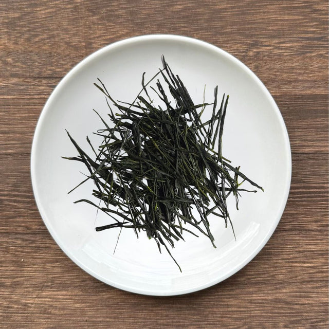 This tea was handpicked for perfect leaf shape and quality, light steamed (asamushicha, again to preserve shape), and finally handrolled for 4-5 hours by master tea craftsmen to create these perfect needles.