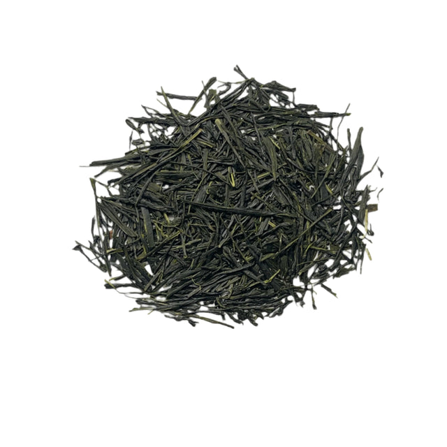 静岡県足久保の山里で、足久保茶業組合の農家が丹精込めて摘み取ったお茶を、美しい形を保つために軽く蒸し、細い針状に揉み込みました。力強い旨味とほのかな渋みが特徴。