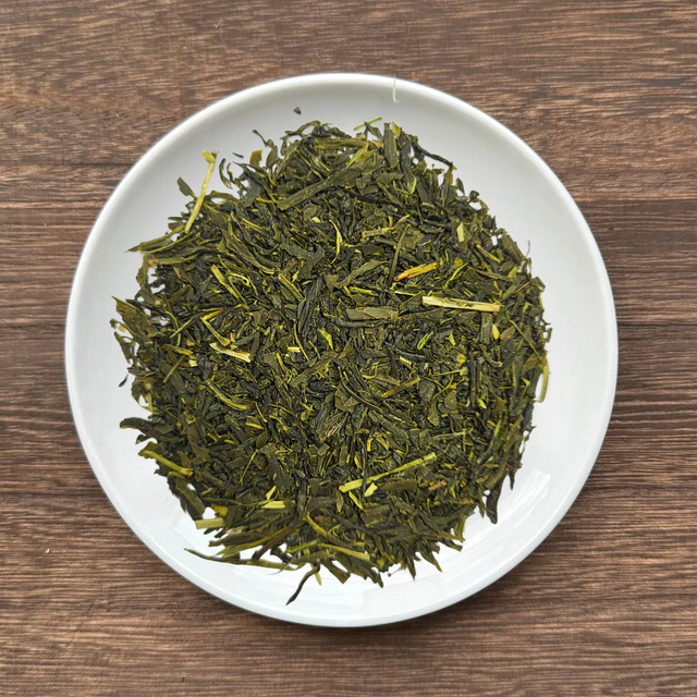 樽井さんのおすすめ茶葉セレクションから、もう一つ。樽井さんの一番茶は、深蒸しでありながら精製されていない「一番茶」​​。茶葉を長期保存するために、焙煎することでほのかな香ばしさが生まれます。樽井茶園では、葉や茎を選別することなく、荒茶(生葉)の独特の香りを大切にしています。実は、樽井茶園が誇りとしているのは、自社で「荒茶工場」を所有していること。この荒茶工場は、茶葉を蒸し、揉む工程で荒茶を作るという、日本茶の重要な工程を担っているのです。この「一番茶」​​は、風味と香りが豊かでバランスの取れた、お茶好きにはたまらない逸品です。